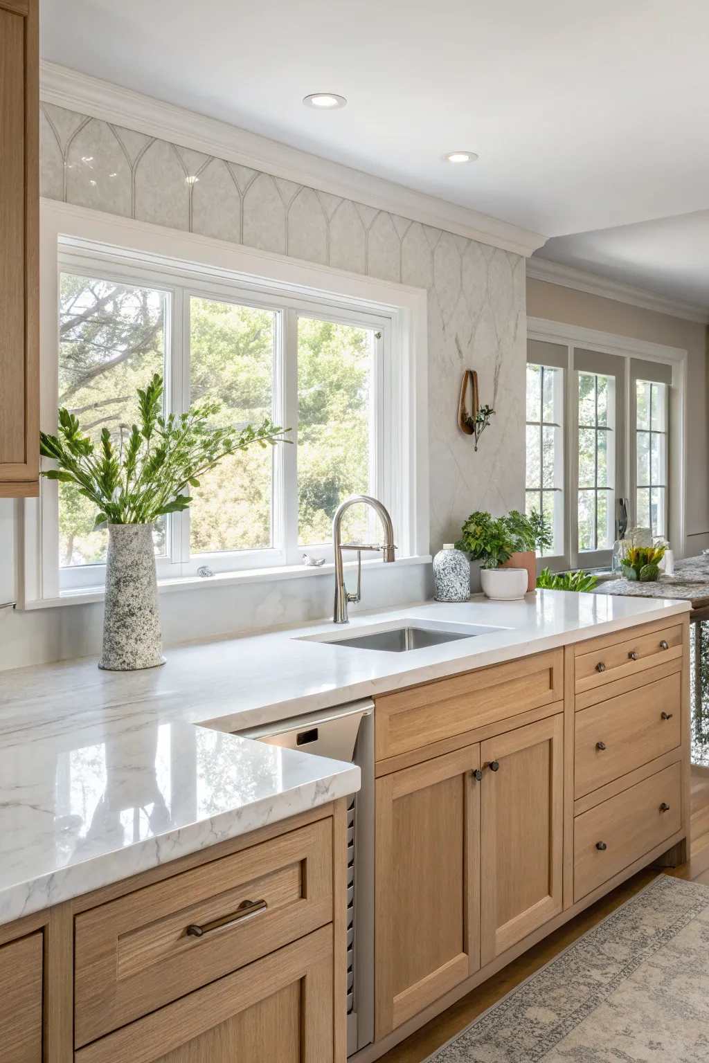 Mixing different quartz styles creates a unique and personalized kitchen design.