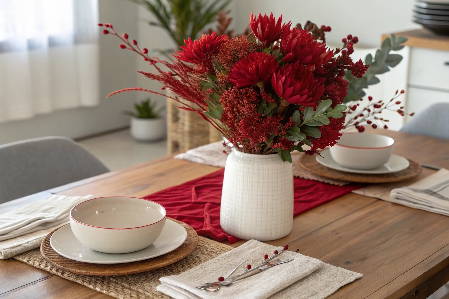 - Artificial Red Berry Branches: Add a festive touch with lifelike red berry branches, perfect for your centerpiece decor.