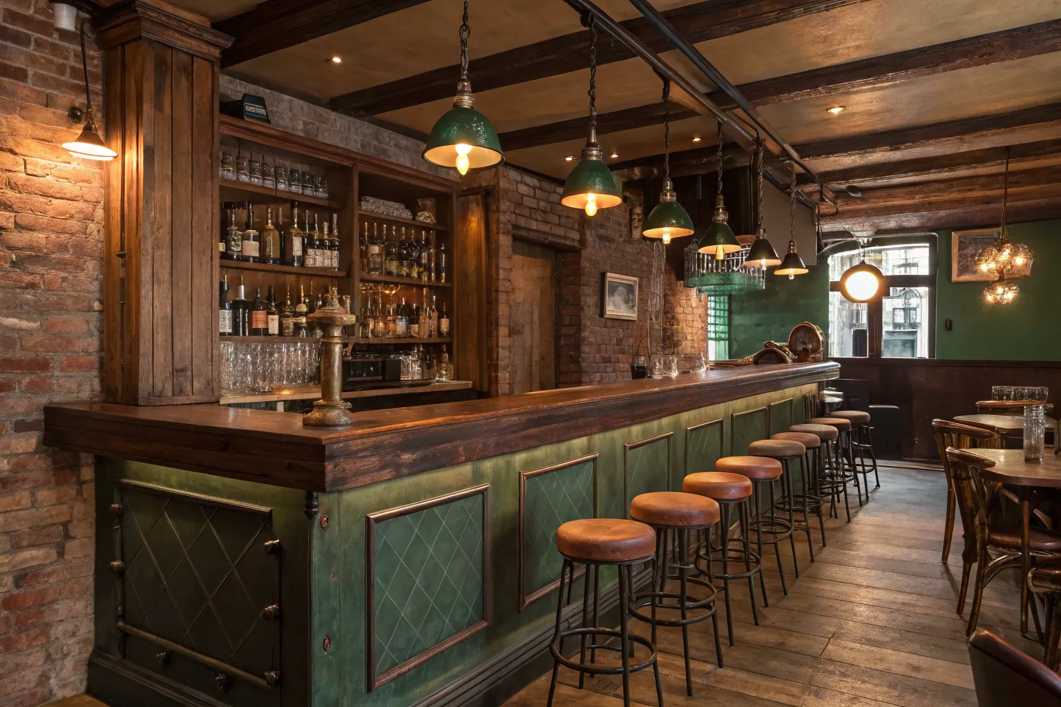 - Rustic Faux Wood Beams: Enhance your bar with elegant faux wood beams for a cozy, authentic rustic charm.