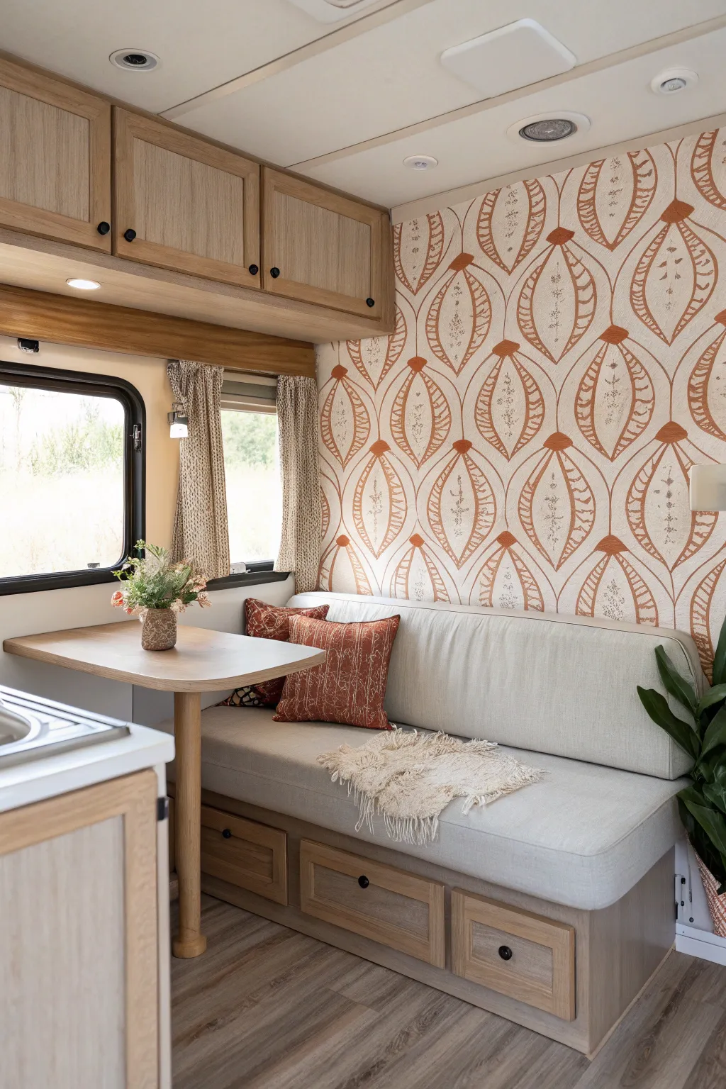 - Retro Floral Wallpaper: Transform your RV with retro floral wallpaper, adding a charming vintage touch instantly.