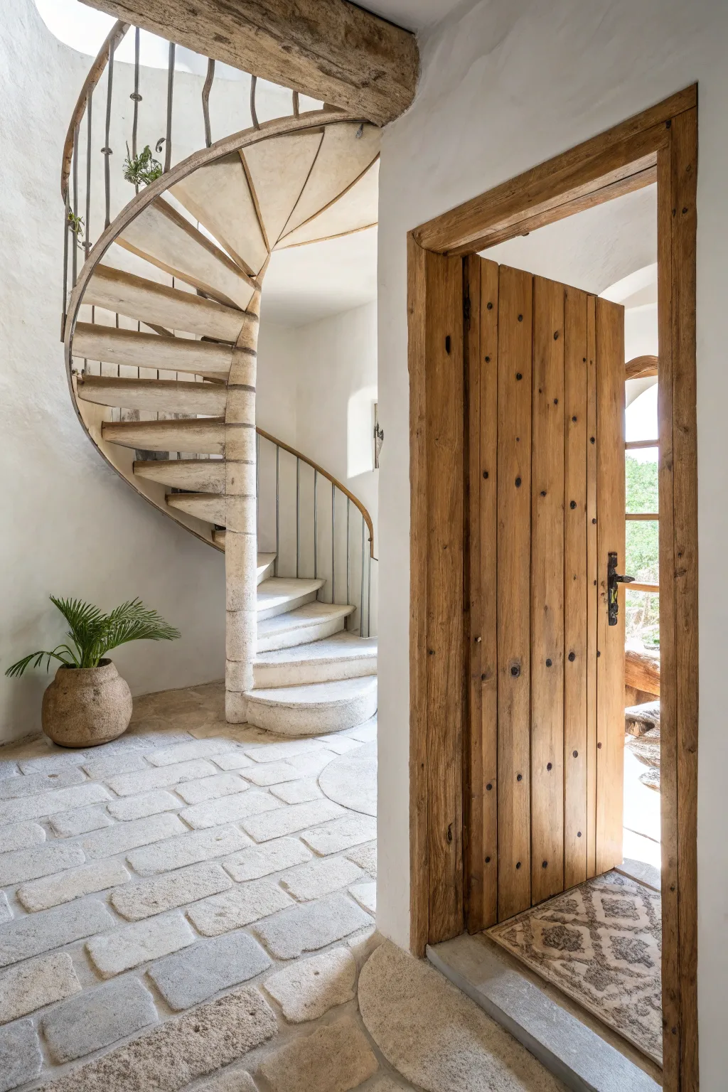 A spiral staircase isn’t just a space-saver; it can also be hidden behind a wall or door for added mystery and charm. 🌿🔄 #StaircaseDesign #HomeInspo