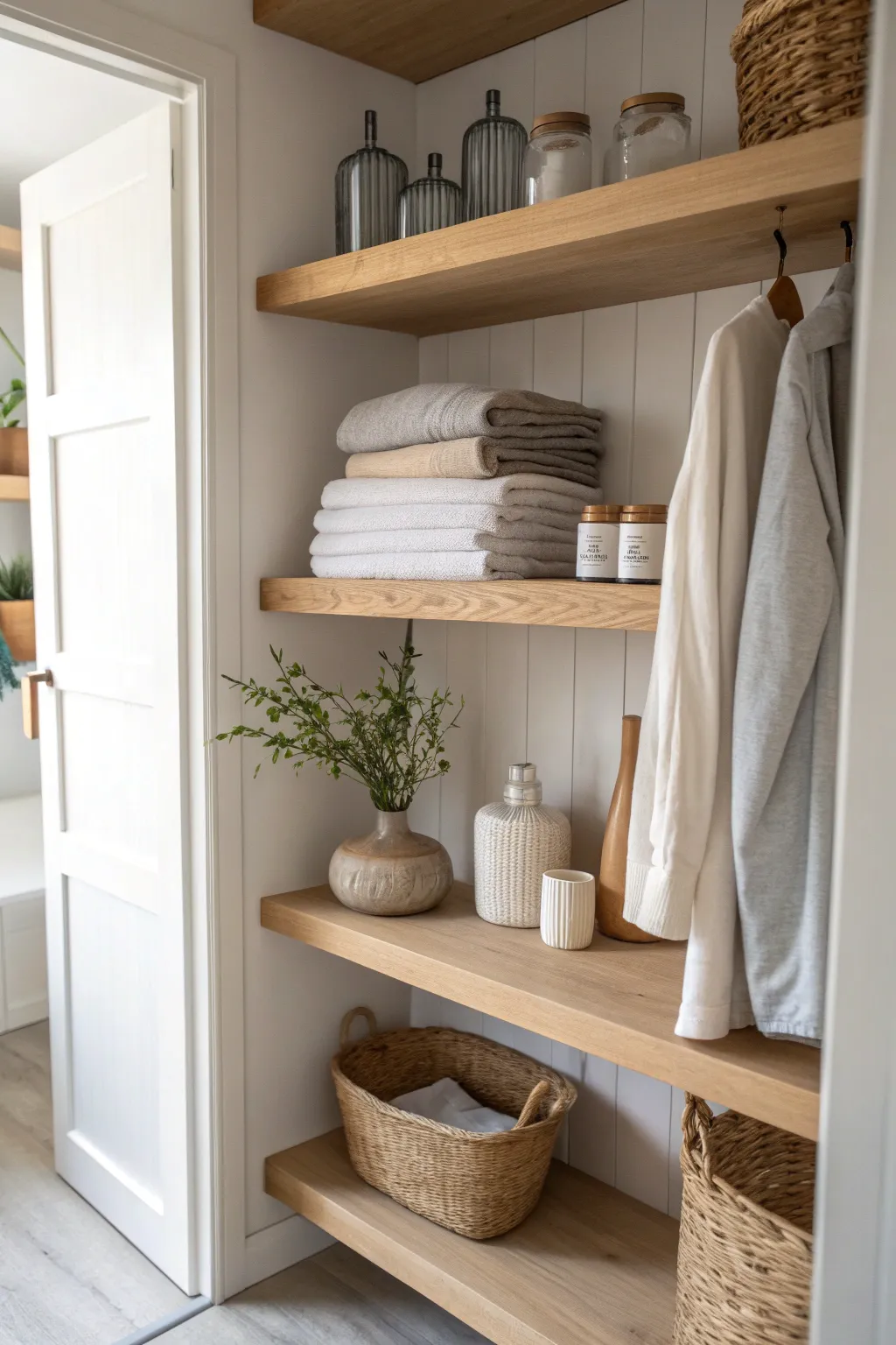 - Wooden Floating Shelf Kit: Transform your closet with sleek wooden floating shelves for a modern and spacious look.