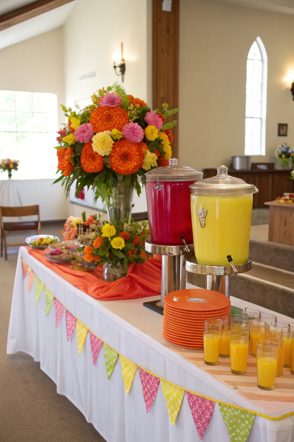 • Brightly Colored Beverage Dispensers: Add vibrant flair to your refreshment station with these eye-catching beverage dispensers, perfect for any theme.