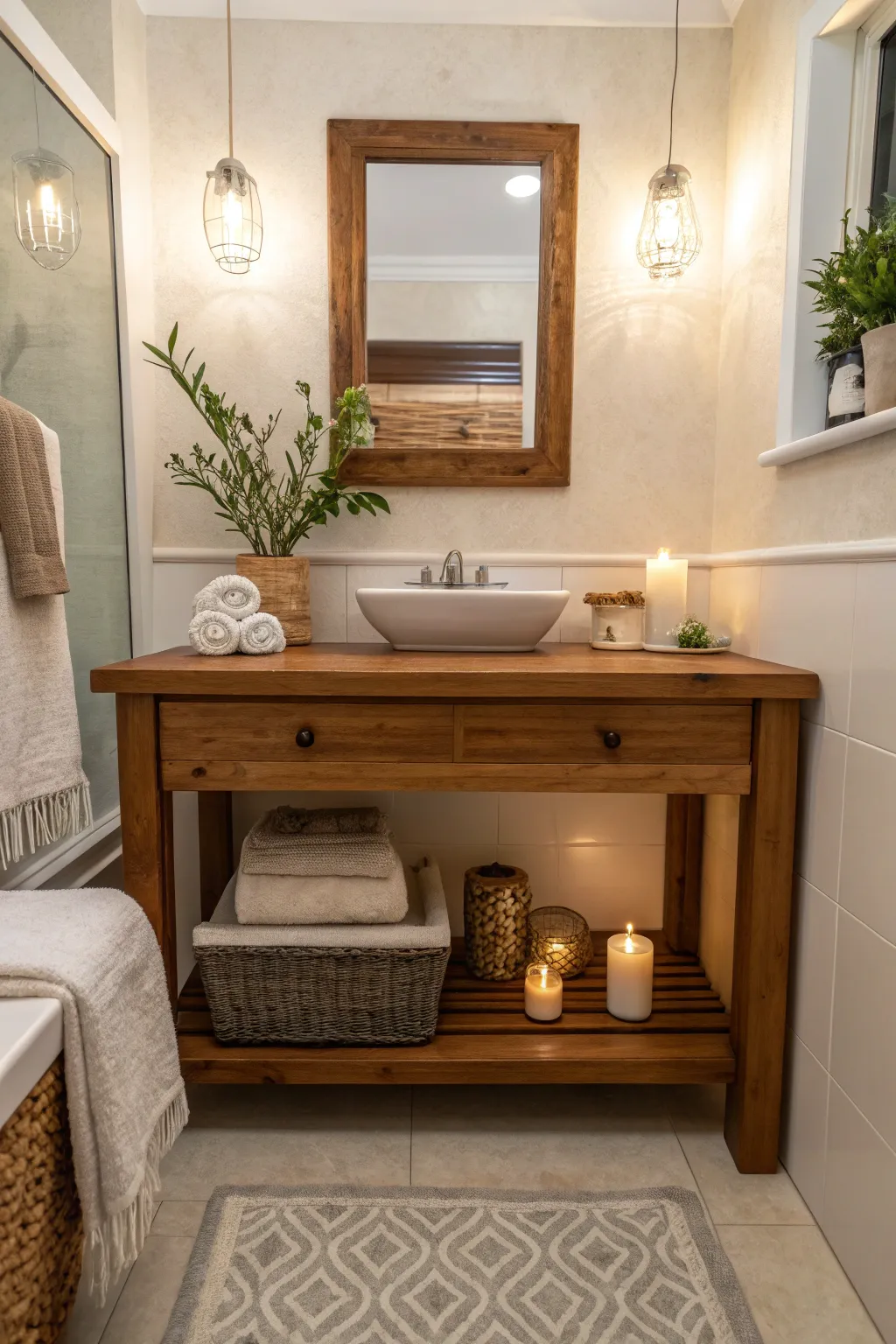 • Wooden Under-Sink Vanity Table: Add rustic charm with this space-saving wooden under-sink table, perfect for compact bathrooms.