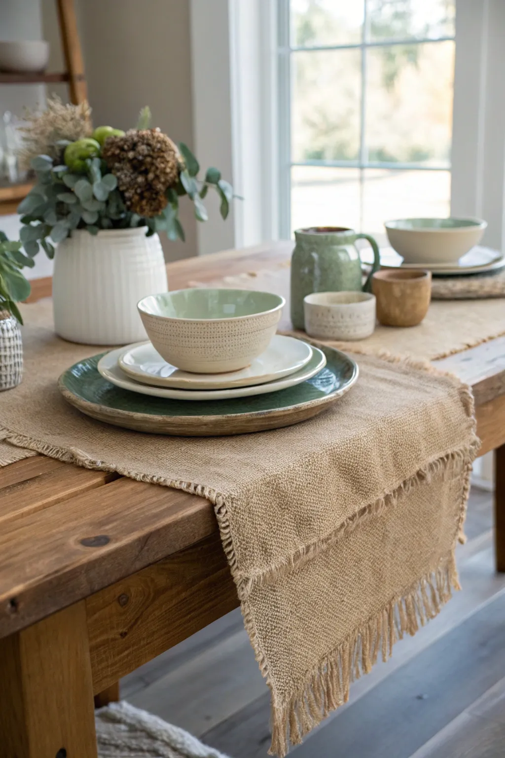 - Burlap Table Runner: Add rustic warmth with a burlap table runner. Elevate your dining experience effortlessly.