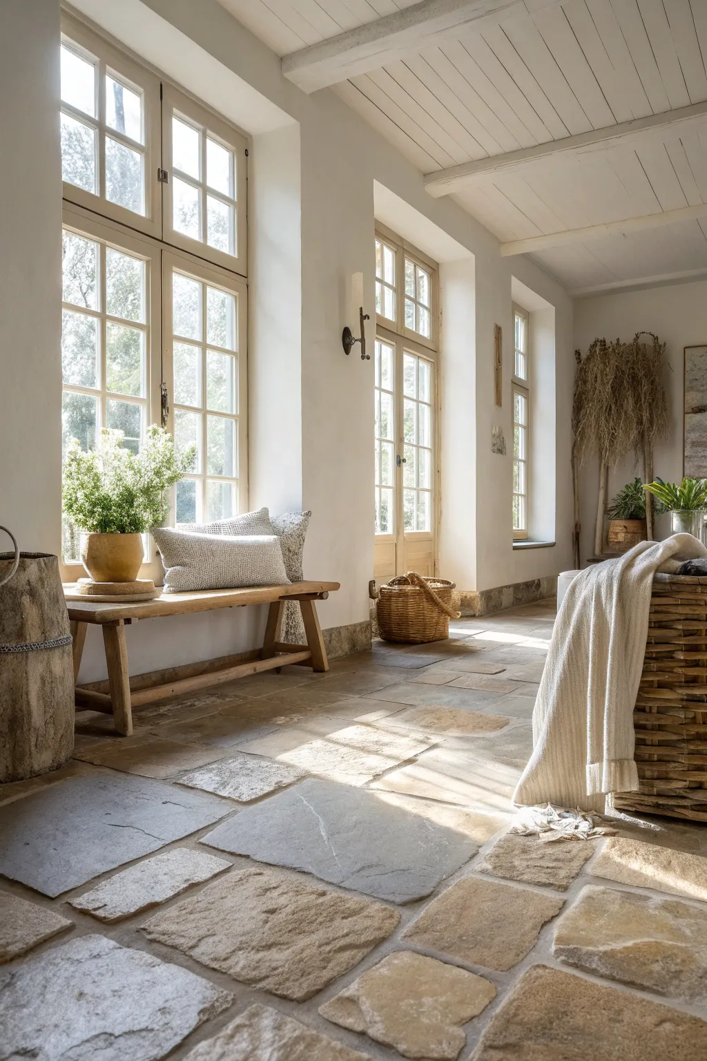 Tumbled stone floors offer a rustic, old-world charm that’s both inviting and unique. I adore how their imperfect edges and textures add character to any space.