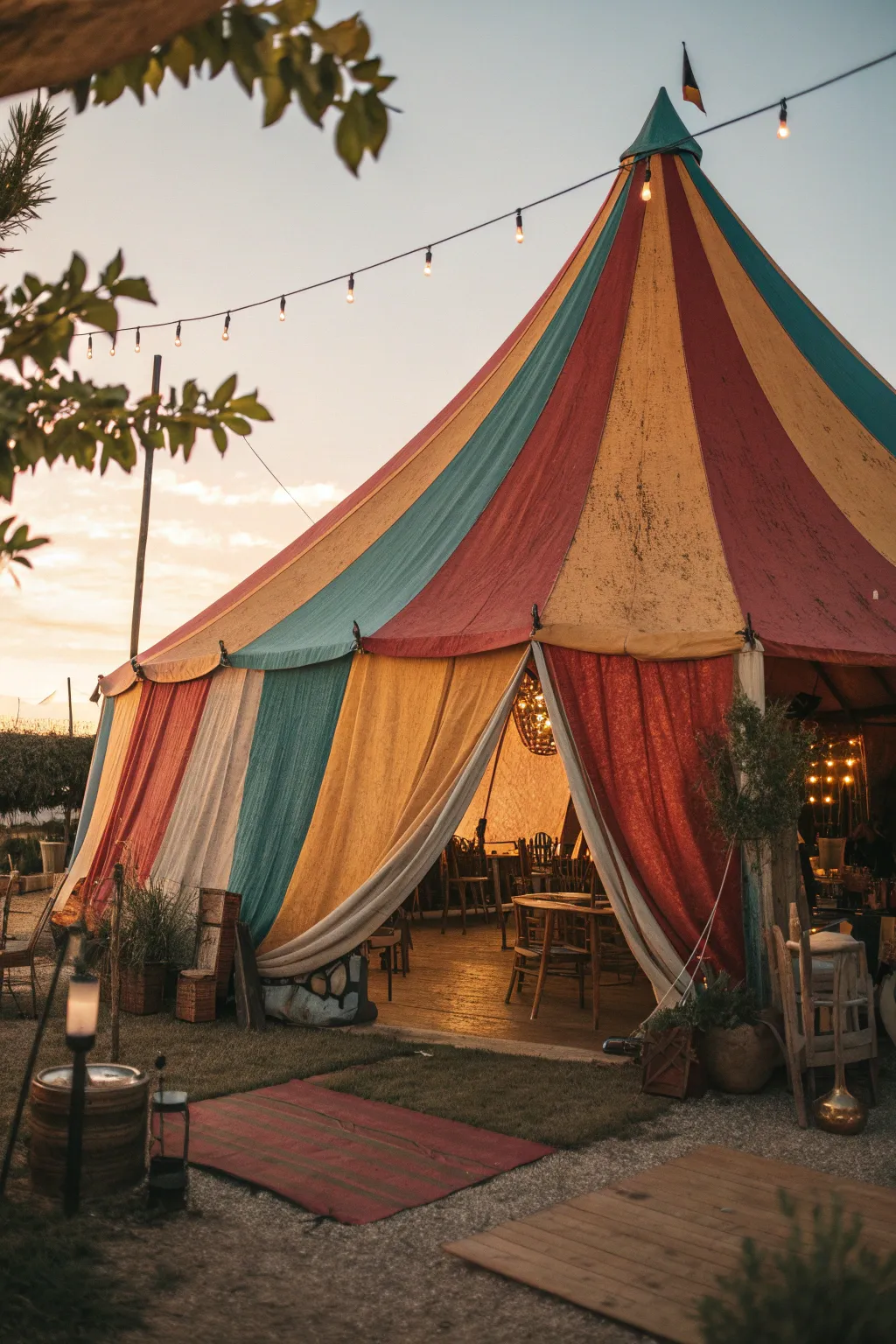 Capture the free-spirited essence of a bohemian style with eclectic drapes and vibrant colors. This relaxed and artistic approach is perfect for festivals and laid-back gatherings.