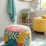 - Patterned Pouf Ottoman: Add versatile seating with a stylish pouf ottoman that complements your room’s playful patterns.