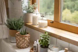 Adding plants or wooden accessories can infuse warmth into your bathroom. I love how a simple wooden shelf or plant can breathe life into a sterile space.