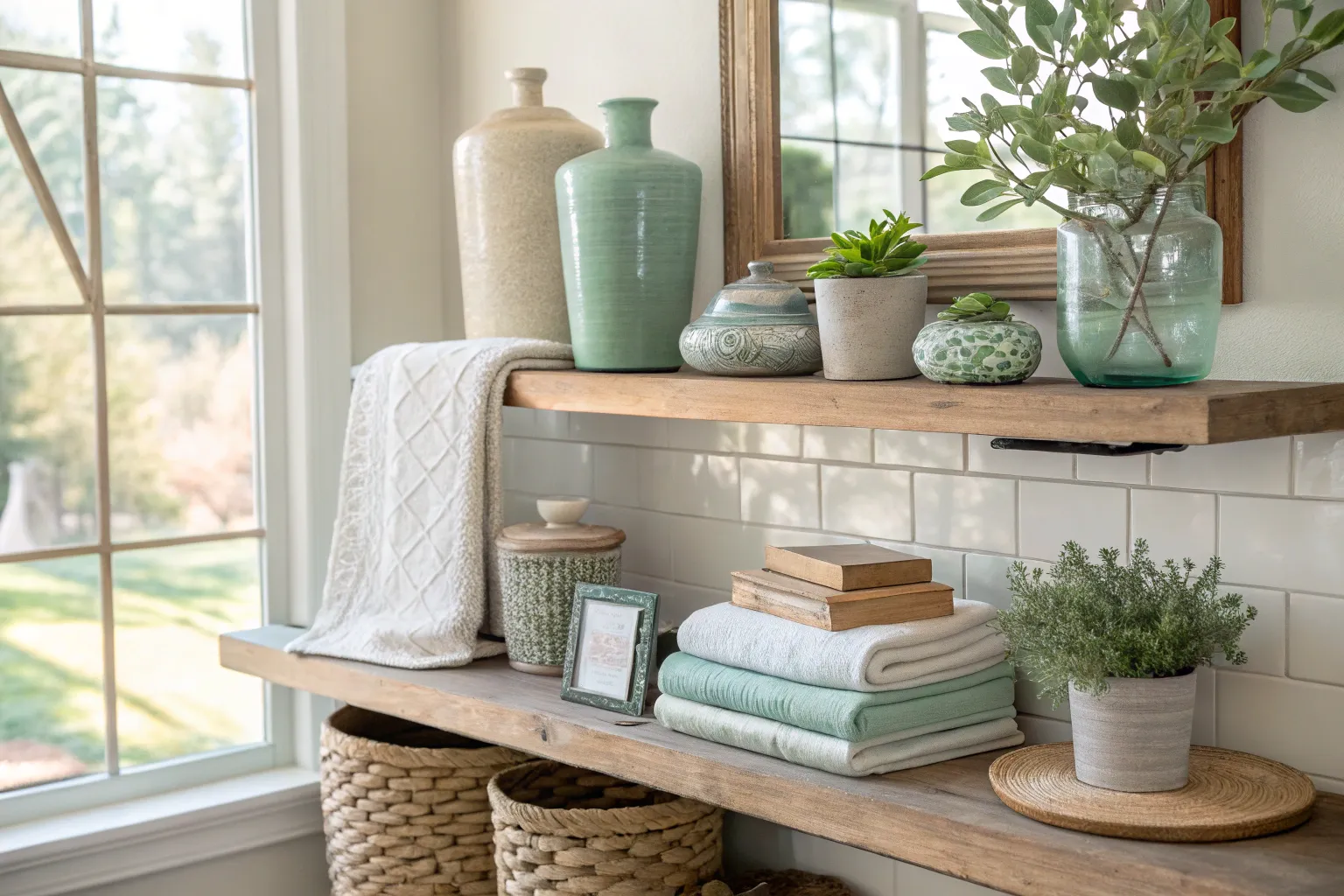 - Rustic Wooden Floating Shelves: Add warmth to your space with these charming rustic wooden floating shelves. Elevate your decor instantly.