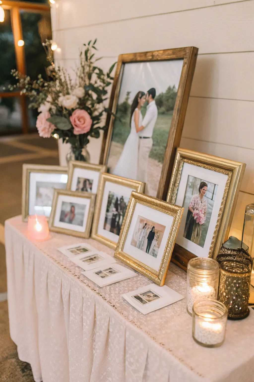 A photo display featuring key moments from your relationship personalizes the welcome table. This adds a personal touch that guests always find endearing. 📸 #LoveJourney #WeddingMemories