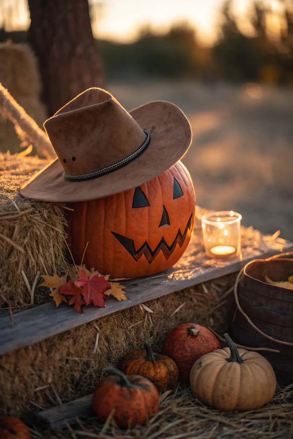 A cowboy hat carved into your pumpkin adds an unmistakable Western vibe. Trust me, it’s the perfect way to tip your hat to the season!
