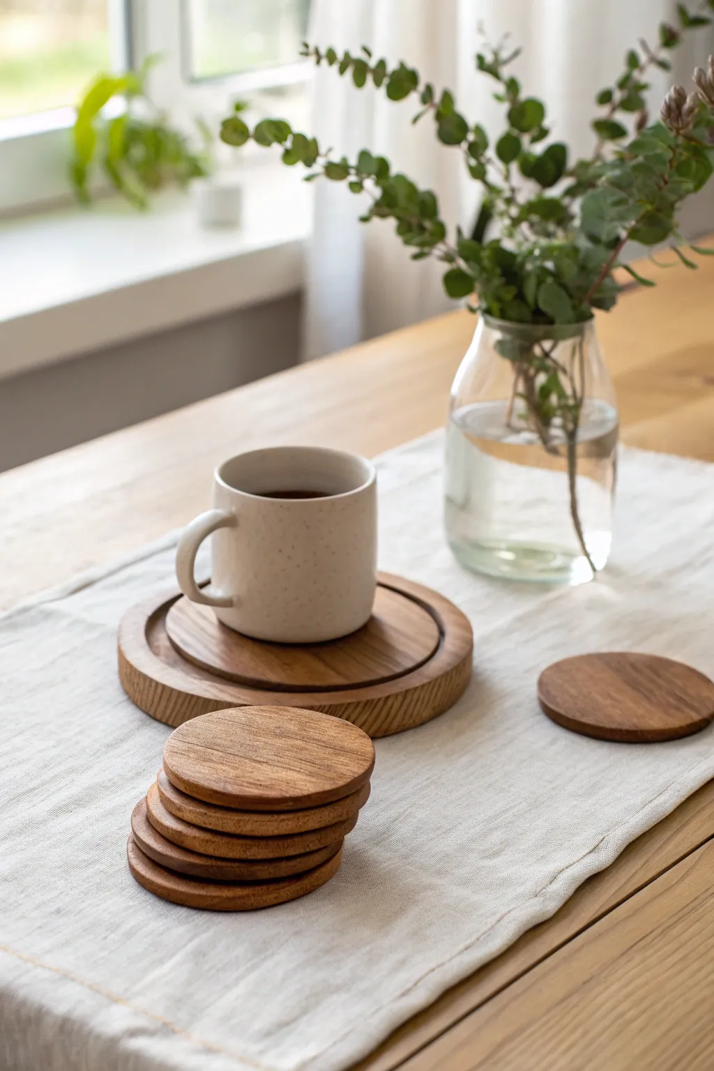 - Rustic Wood Coaster Set: Add charm with rustic wood coasters, a stylish addition for your coffee table setup.