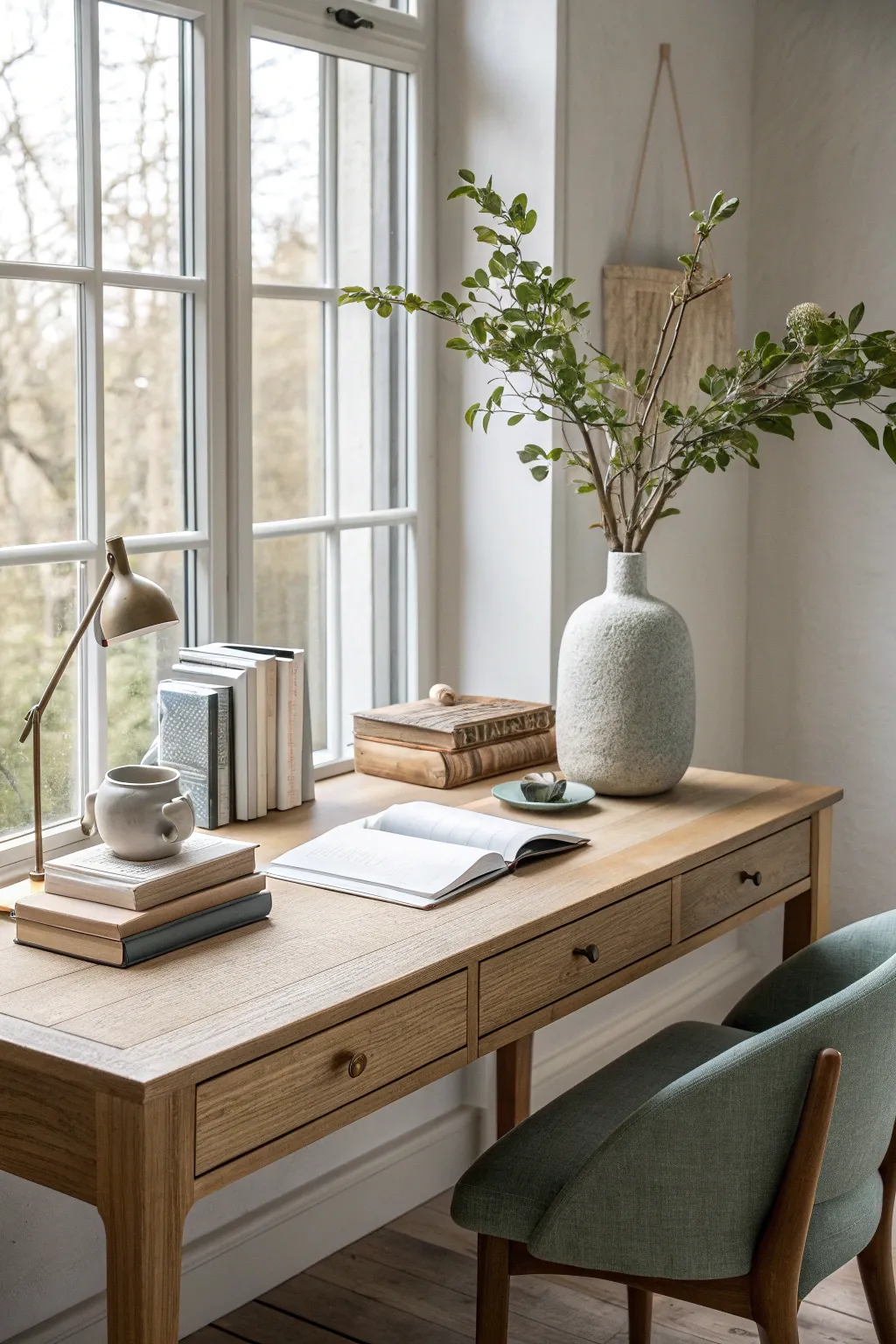 • Wooden Desk Organizer: Keep your workspace tidy with a stylish organizer, perfectly complementing natural light settings.