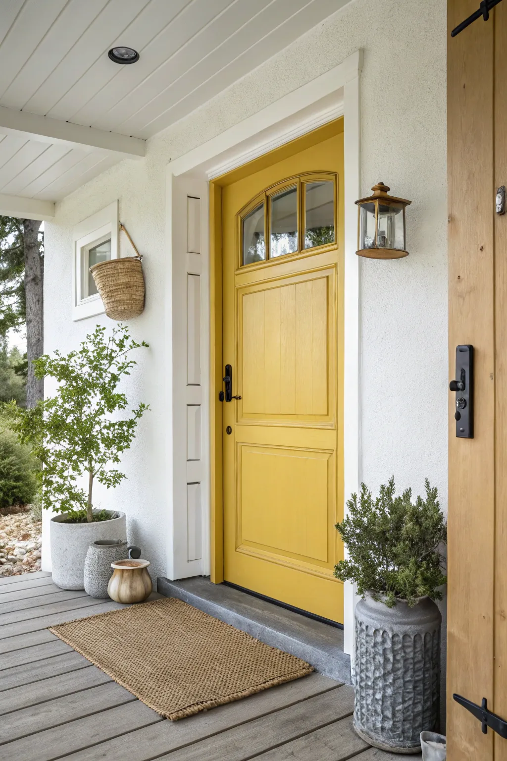 A yellow-painted front door can be an unexpected yet delightful way to welcome guests. It sets a cheerful tone right at the entrance of your home.